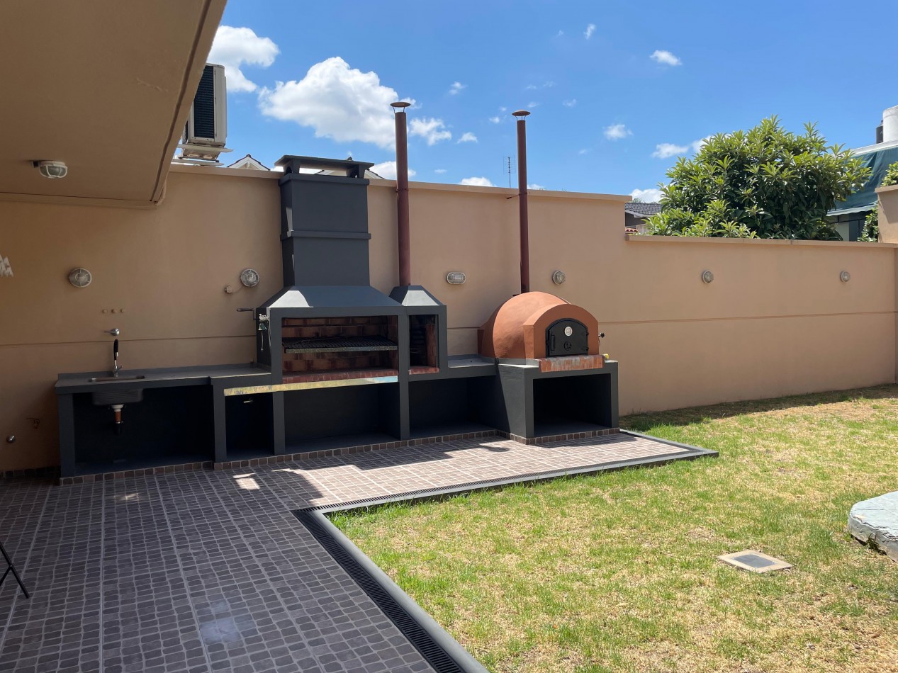- Sector de cocina exterior junto a la pileta, con parrilla, horno de barro y lavadero.