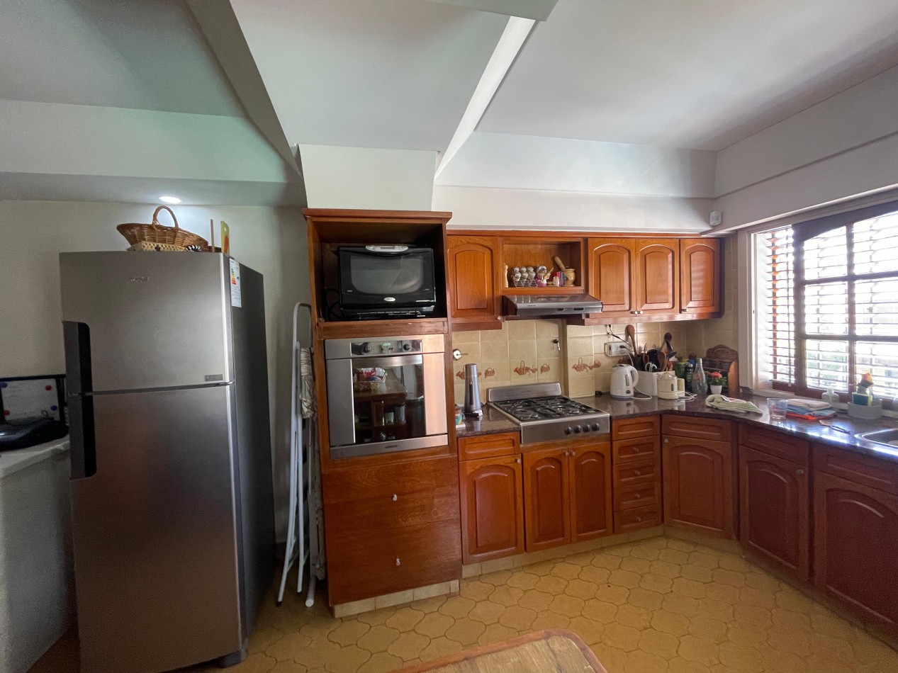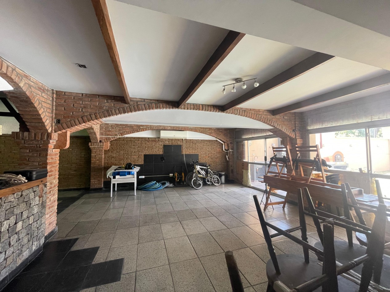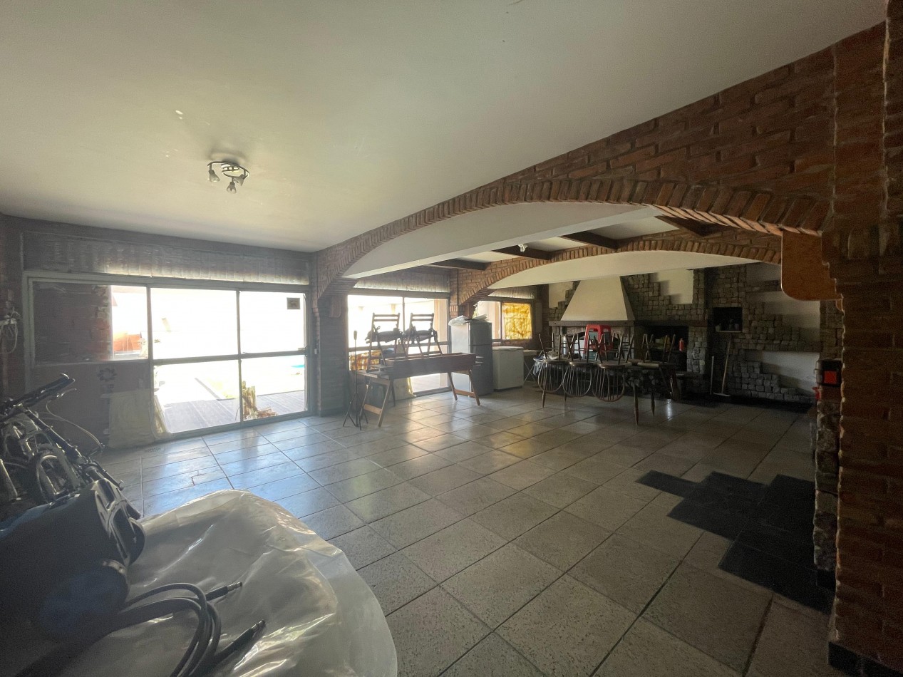 - Garage cubierto tipo quincho con capacidad para hasta 4 vehículos, equipado con parrilla, chimenea, salamandra y cocina económica de hierro.
